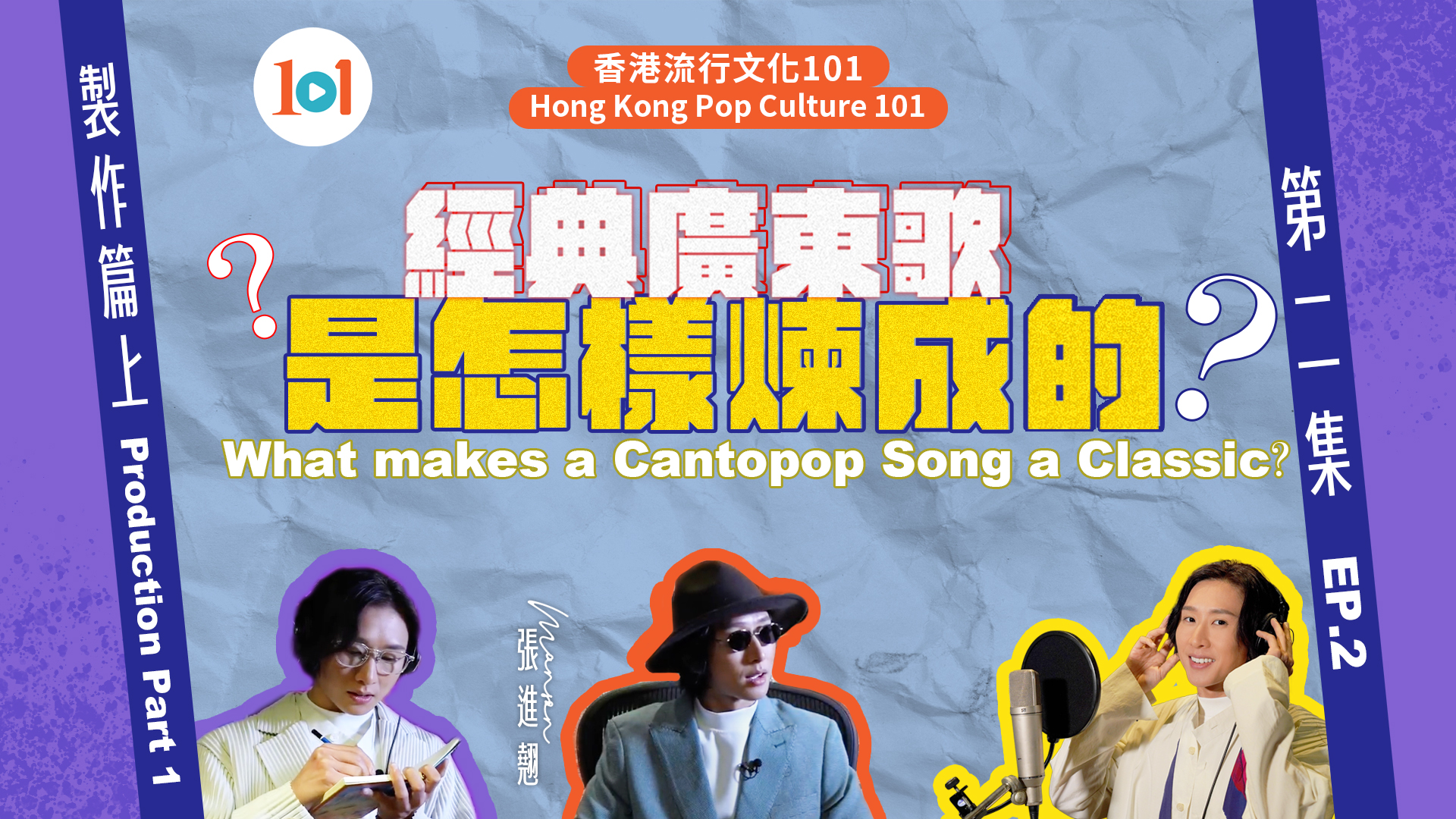 大家都喜歡聽廣東歌,但有沒有想過一首經典廣東歌是怎麼誕生的?康文署寓樂頻道「101入門教室」將會一連三集,由唱作歌手Manson張進翹與大家分享廣東歌的特色和變遷,以及講解曲、詞、編、監、混、唱,這六個製作廣東歌的主要崗位,為大家揭開歌曲製作的神秘面紗。